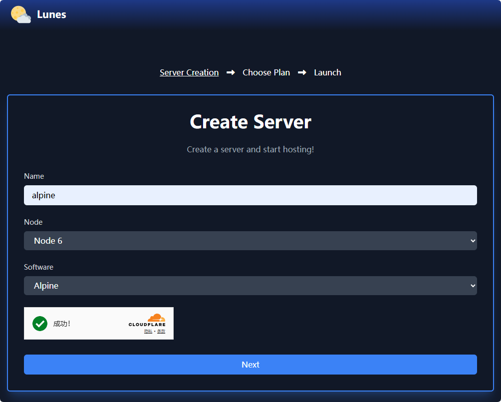 创建服务时,名称随便,NODE选择 6 区,软件那里可以选择现成的系统,也可以选择 proot 稍后再选择,然后按提示选择免费的版本即可;